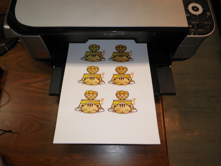 ・レーザープリンタでプリントした画像を切りとり 水で濡らしてからカップなどに添付し、裏紙は滑らせて抜く。 |